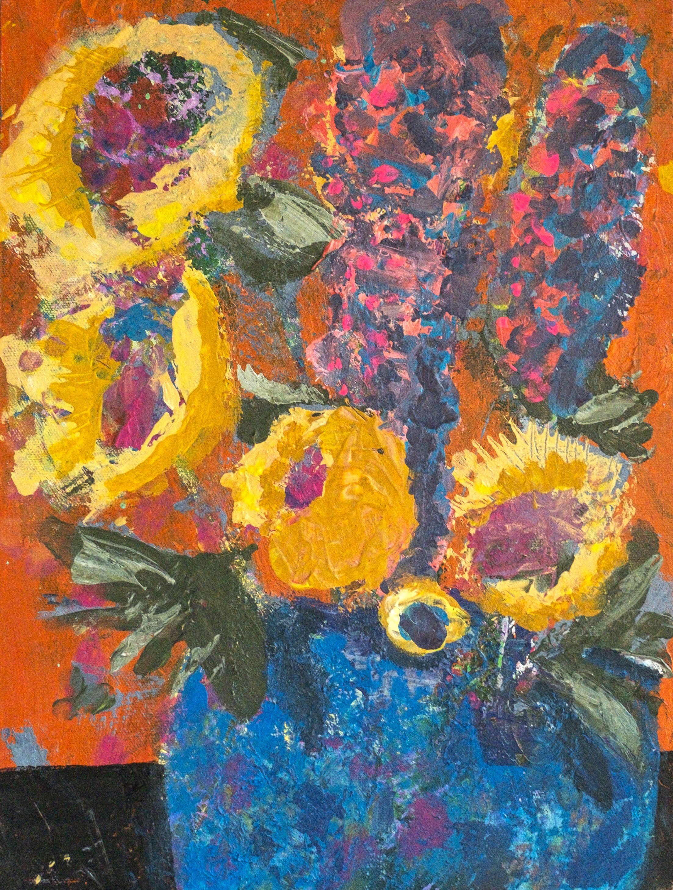 Unlike the rigid structure of Victorian floriography, though, my blooms are abstract and untethered. They explode across the canvas in a riot of colour and texture, and are unabashed in their expression.